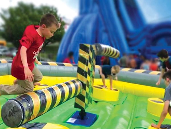 The Eliminator is an exhilarating mechanical inflatable game that puts agility and reflexes to the ultimate test. Players must duck under or leap over two rapidly spinning padded arms. The challenge intensely ramps up as the arms change speed and direction, making this action-packed, last-player-standing competition an absolute favorite for any event or gathering.