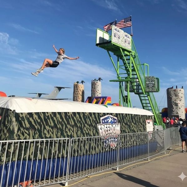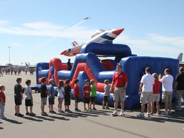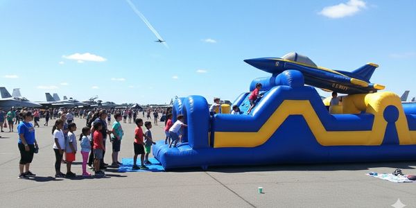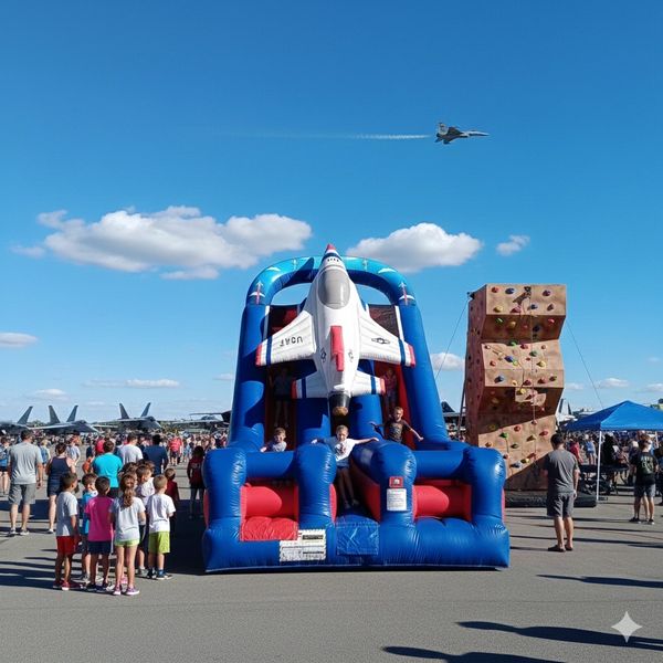 Styled in the patriotic red, white, and blue of the elite U.S. Air Force team, this inflatable is a main attraction for any kid zone. The 30-foot challenge features exciting pop-ups, a demanding climbing wall, and a rewarding slide finish. It provides a fun, active, and patriotic adventure for children, bringing the excitement of the air show right down to the ground!